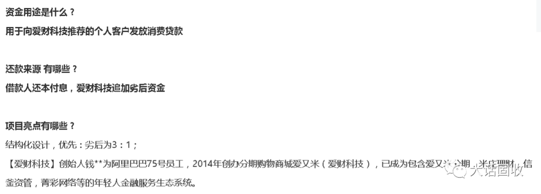 信托設立了一個3:1的比例,由愛財集團認購四分之一份額;并晚于一般投資者1個月到期;但算算日子,項目要到2020年6月才到期,而愛財集團已經倒了。