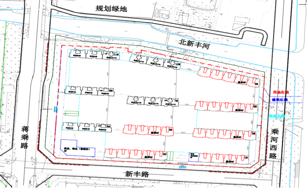 在總用地及目標容積率確定后,簡單用方程式模型來確定低、高層的用地分布,并確定住宅區(qū)分布位置;同時通過市場調研和競品分析等得到各業(yè)態(tài)的建議配比及戶型配比。通過不斷的調整,得出詳細的強排方案圖及規(guī)劃指標表。