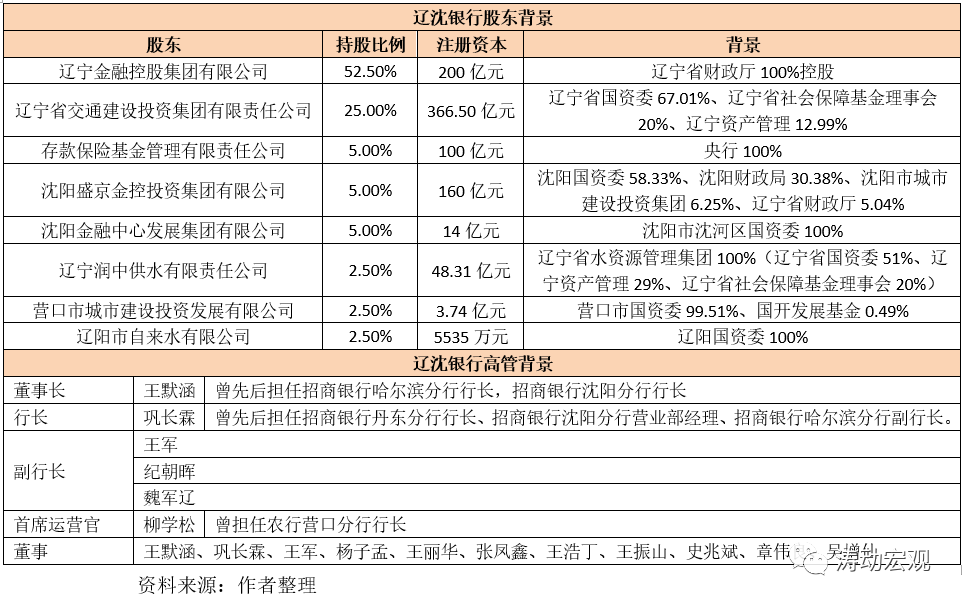 5、遼沈銀行的董事長和行長均出自招行系統,如其董事長王默涵曾擔任招行哈爾濱分行行長、沈陽分行行長,鞏長霖曾擔任招行哈爾濱分行副行長。其它高管大多來自遼寧省行政系統或金融系統。