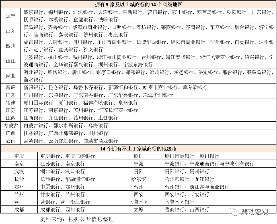 3、另有10個地區分別擁有2家城商行,8個地區分別擁有1家城商行。