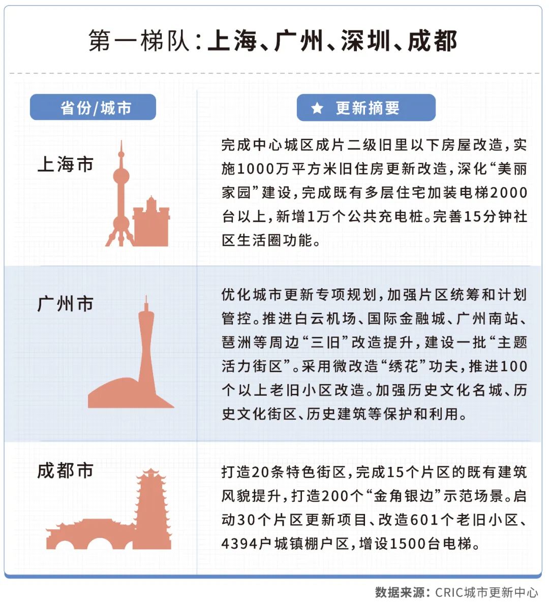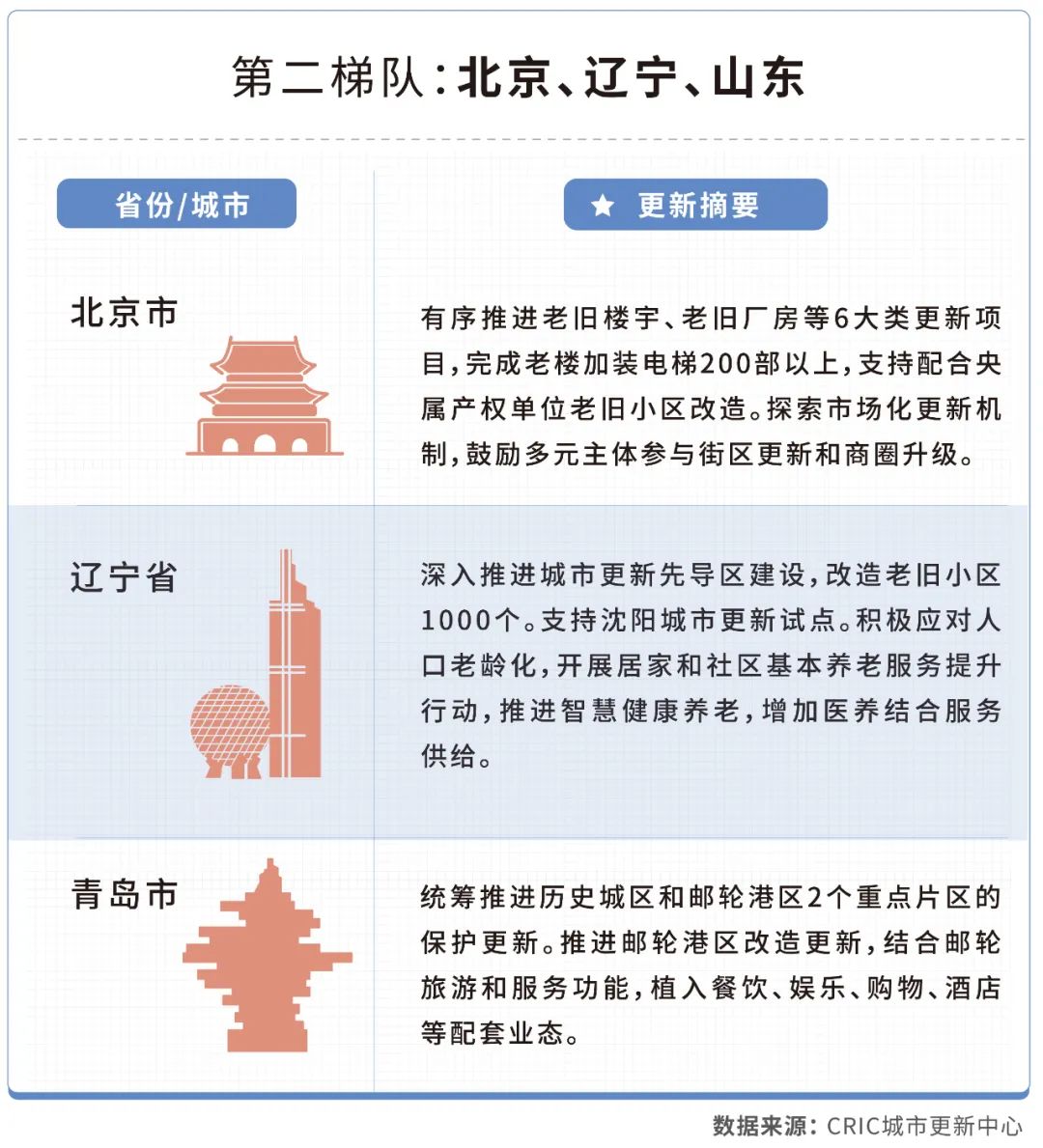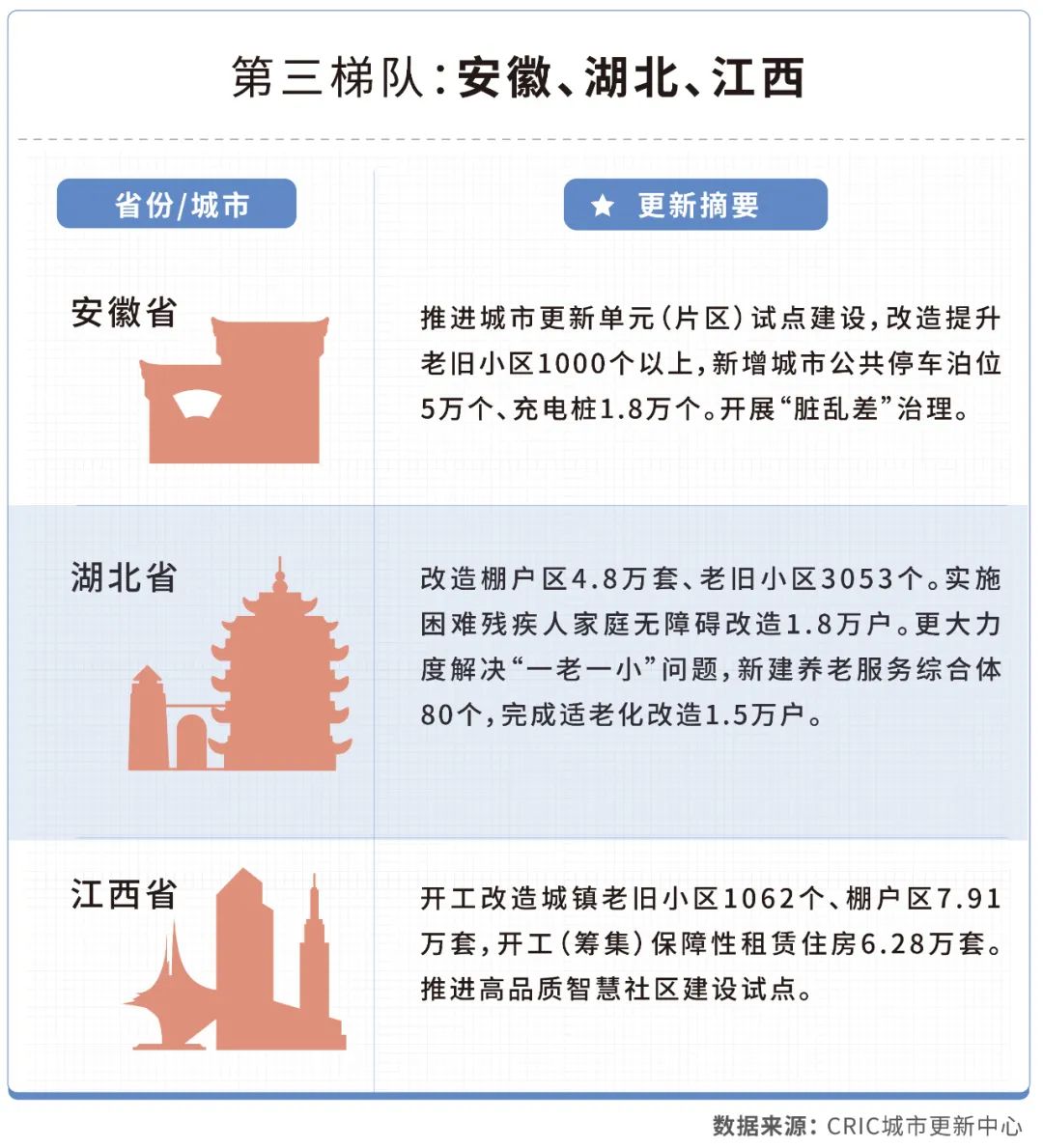 由于經濟基礎和人口基礎一般,這些省市基本處在集中資源發展省會城市的階段,所以除去省內最發達的個別城市外,更新內容多停留在棚戶區改造、老舊小區加裝電梯、管網改造等公共設施建設和基本生活保障層面。