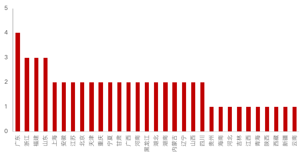 各省份及直轄市設(shè)立的地方AMC個數(shù)