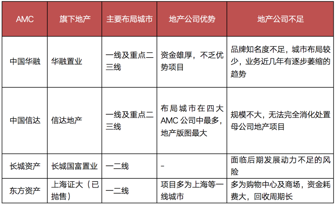 表:四大AMC公司旗下地產(chǎn)公司布局
