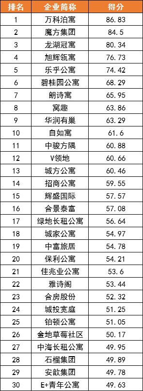 TOP30集中式長租公寓企業(yè)中魔方公寓、樂乎公寓等創(chuàng)業(yè)系企業(yè)在行業(yè)初始入局,挺過“危機”期,證明了其強大的運營能力。