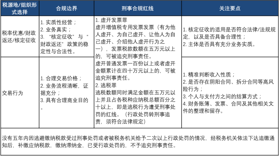 結(jié)合目前直播電商賽道中常用的個稅成本控制模式,我們建議企業(yè)/個人在考慮建構(gòu)/重塑個稅合規(guī)結(jié)構(gòu)時,應(yīng)嚴(yán)格遵循以下邊界: