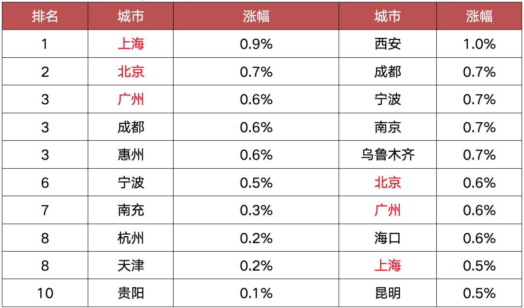比如四大一線城市普漲,新建商品住宅銷售價格環(huán)比上漲0.5%,其中北京、上海、廣州和深圳分別上漲0.6%、0.5%、0.6%和0.4%,二手住宅價格漲幅比上月擴大0.4個百分點。一線城市已經(jīng)進入到了二手房成交為主流的房地產(chǎn)市場,上海、北京、廣州包攬二手房漲幅TOP3。