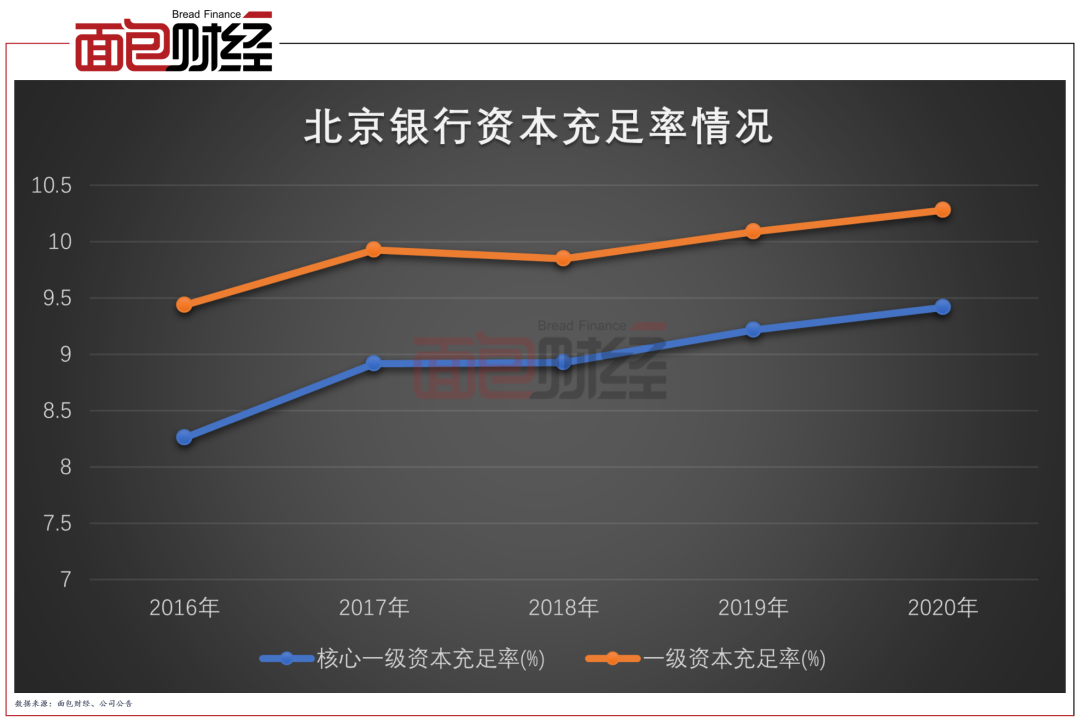 數(shù)據(jù)顯示,截至2020年末,北京銀行核心一級資本充足率、一級資本充足率及資本充足率分別為9.42%、10.28%和11.49%,均滿足監(jiān)管要求。