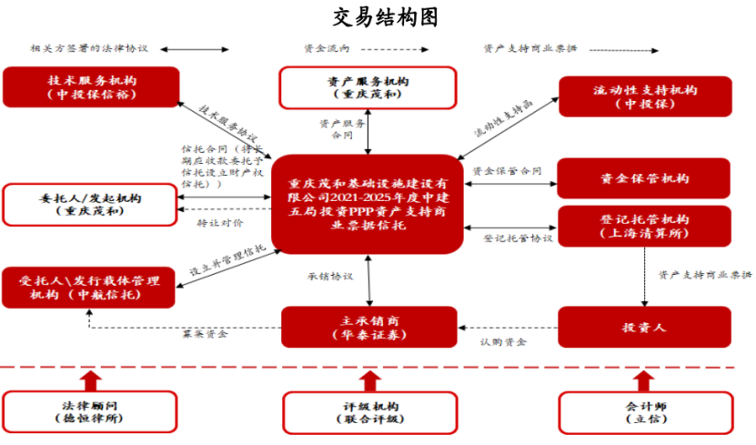 重慶茂和基礎(chǔ)設(shè)施建設(shè)有限公司2021年度第一期中建五局投資PPP資產(chǎn)支持商業(yè)票據(jù),具體了解一下PPP和ABCP碰撞出來的火花,項目尚在協(xié)會預(yù)評中。