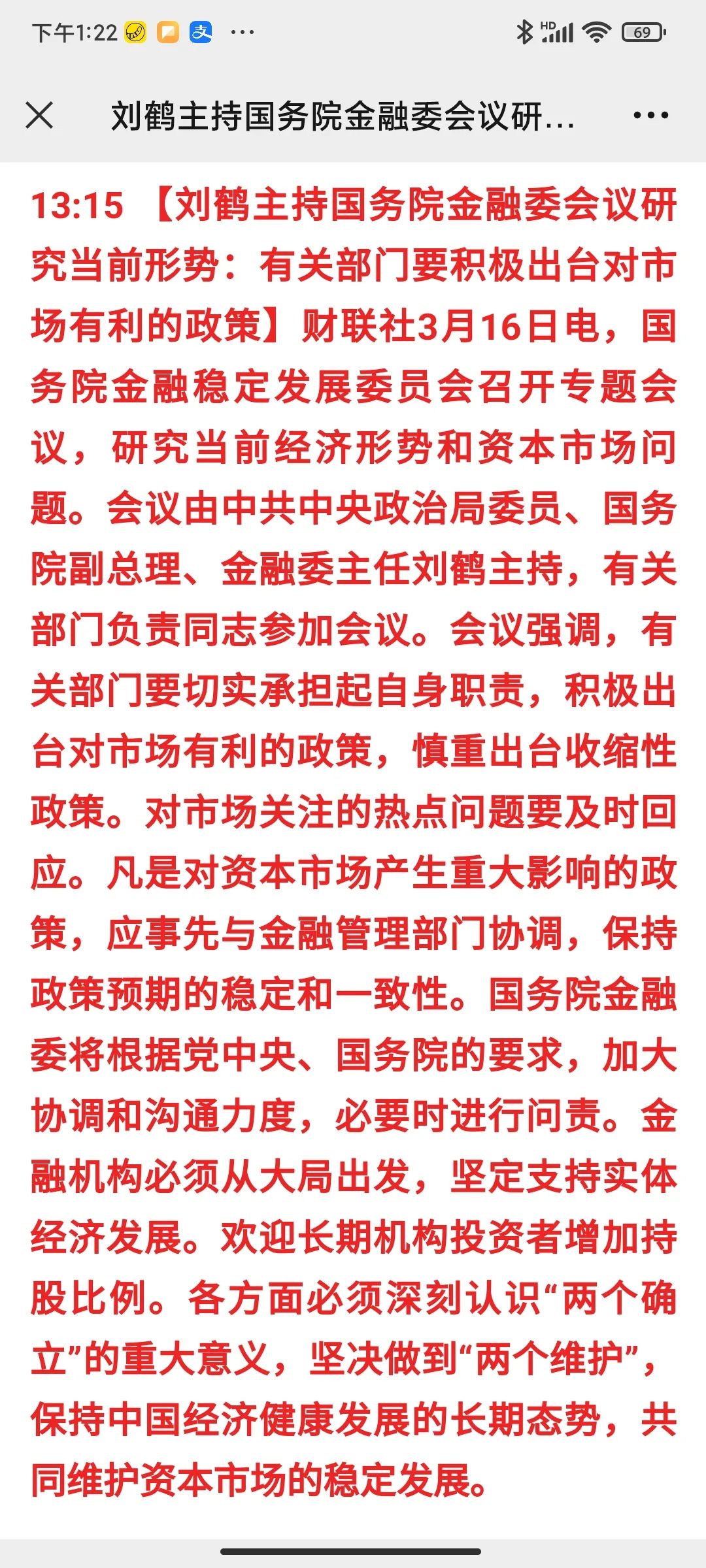 最近,俄烏戰爭、疫情反撲、中美脫鉤,對于眼下的時局而言,可能是我們一輩子都未曾遇到的艱難。在如此艱難的時刻,房地產不該躺在ICU的病房里,是不是該好好地考慮如何讓它盡快站起來,成為穩住經濟基本盤的支柱,成為穩定社會的穩定器。寫到這時,炸天團突然被一條消息刷屏了:劉鶴主持金融委會議研究當前形勢。慎重出臺收縮性政策