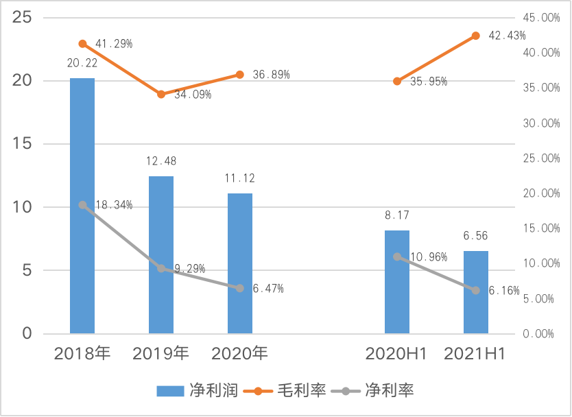 在盈利指標上,萬達商管歸母凈利潤出現了連年下滑的局面,從2018年的20.22億元下降至2019年的12.48億元,2020年進一步降至11.12億元,2021年上半年同樣同比下降19.7%。毛利率企穩有所回升,今年上半年達到42.43%,創下近三年新高;銷售凈利率同樣出現了下滑情況,上半年已經低至6.16%,與高毛利水平不相匹配,主要是由于今年上半年企業為調整運營模式,出售附屬公司從而你導致虧損13.2億。