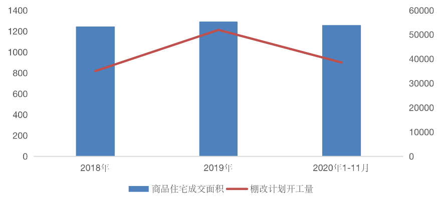 圖:2018-2020年12個重點省份棚改計劃開工量(萬套)