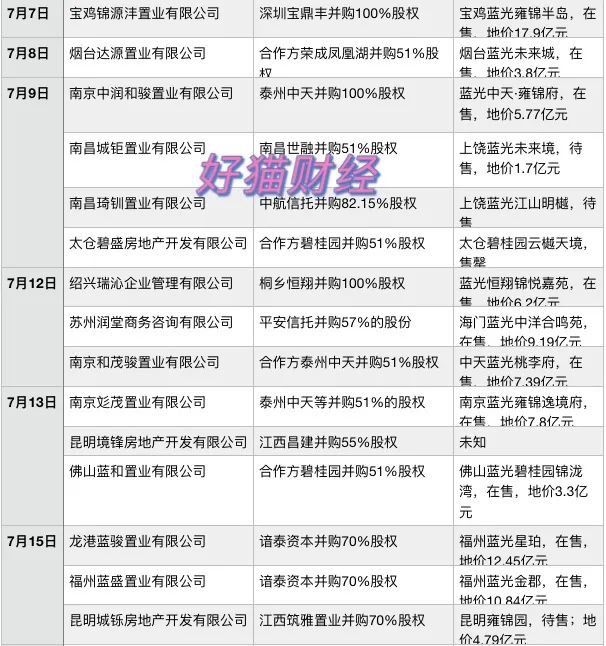 比如煙臺藍光中南林樾項目,合作方中南建設以4億元對價,從藍光手里收購了40%的項目股權,以及藍光對項目公司4.8億元的債權。