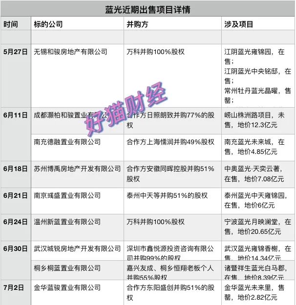 不到兩個月藍光甩賣了36個項目