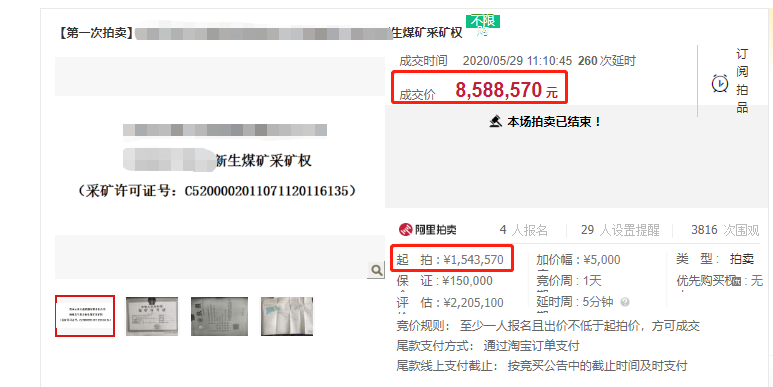 在我們檢索過程中發現,被執行人的探礦權、采礦權也有較高的價值,從普通的沙石礦到昂貴的煤礦、有色金屬礦等,相應的探礦權、采礦權均有成功處置的記錄。