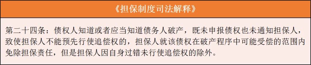 (2)破產(chǎn)債權(quán)人怠于行使權(quán)利免責(zé):債權(quán)人知道或者應(yīng)當(dāng)知道債務(wù)人破產(chǎn),既未申報(bào)債權(quán)也未通知擔(dān)保人,致使擔(dān)保人不能預(yù)先行使追償權(quán)的,擔(dān)保人就該債權(quán)在破產(chǎn)程序中可能受償?shù)姆秶鷥?nèi)免除擔(dān)保責(zé)任,但是擔(dān)保人因自身過錯(cuò)未行使追償權(quán)的除外。法條鏈接: