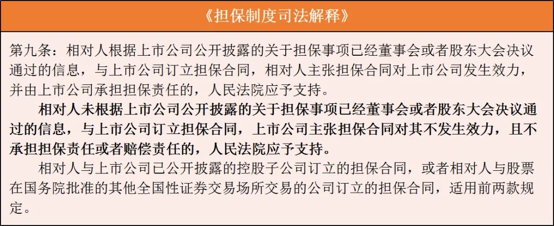 (4)未根據(jù)上市公司披露的信息免責(zé):上市公司披露的關(guān)于擔(dān)保事項(xiàng)已經(jīng)董事會(huì)或者股東大會(huì)決議的信息具有法律上的公示效力,相對人依據(jù)該信息與上市公司訂立擔(dān)保合同合法有效。相對人未根據(jù)上市公司公開披露的關(guān)于擔(dān)保事項(xiàng)已經(jīng)董事會(huì)或者股東大會(huì)決議通過的信息,與上市公司訂立擔(dān)保合同,上市公司不承擔(dān)擔(dān)保責(zé)任。法條鏈接: