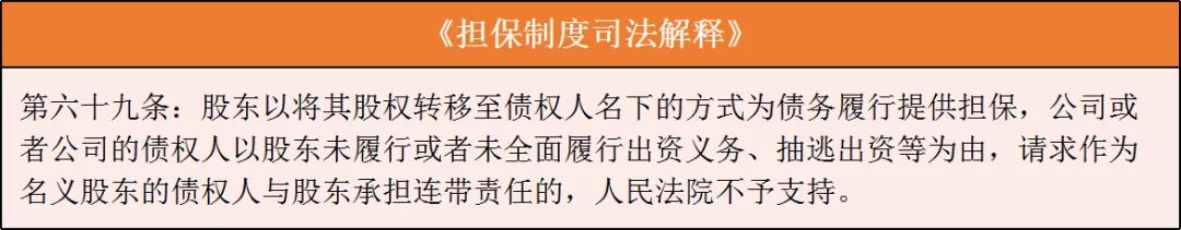 (5)名義股東免責(zé):股東僅是為債務(wù)履行提供擔(dān)保而將其股權(quán)轉(zhuǎn)移至債權(quán)人名下,此時(shí)債權(quán)人為名義股東,公司或者公司的債權(quán)人不得以股東未履行或未全面履行出資義務(wù)、抽逃出資等為由要求作為名義股東的債權(quán)人與股東承擔(dān)連帶責(zé)任。法條鏈接: