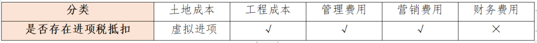 1)土地成本:如果按照增值稅憑票抵扣的原則,土地成本由于并無增值稅專票,因此也就不存在相應的進項稅抵扣,然而土地成本在房地產開發成本中所占比重非常大,所以在36號文中對此做了專項約定,即允許土地成本(含土地出讓金、拆遷補償款)在計算銷項稅時進行抵扣,抵扣的數值為土地成本的“虛擬進項”。