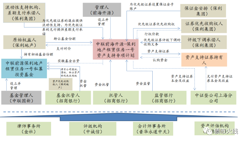 類REITs交易結(jié)構(gòu)里有引入私募基金的產(chǎn)品結(jié)構(gòu),此類最為常見,比如: