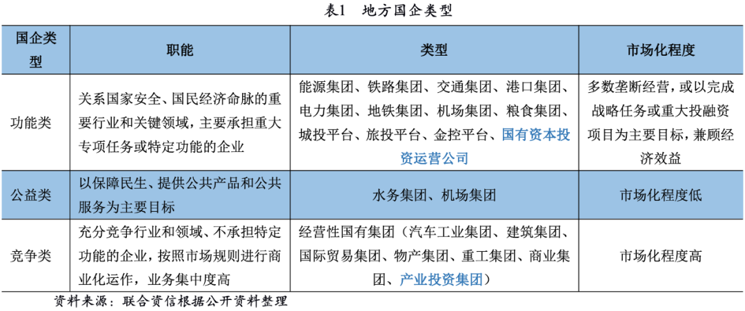 從本次的研究范圍——地方產(chǎn)投平臺(tái)來(lái)看,既存在市場(chǎng)化程度較高的產(chǎn)業(yè)投資集團(tuán),又存在雖控股經(jīng)營(yíng)性業(yè)務(wù),但平臺(tái)融資主要投向公益性資產(chǎn)或其他政府指定投融資任務(wù)的國(guó)有資本投資運(yùn)營(yíng)公司(或國(guó)資控股公司),還存在部分處于轉(zhuǎn)型過(guò)程中的城投企業(yè),在其逐步減少基礎(chǔ)設(shè)施投資建設(shè)職能后,主要依靠政府劃撥的經(jīng)營(yíng)性資產(chǎn)向市場(chǎng)化經(jīng)營(yíng)轉(zhuǎn)型,地方產(chǎn)投平臺(tái)的具體分類(lèi)及公司如表2。