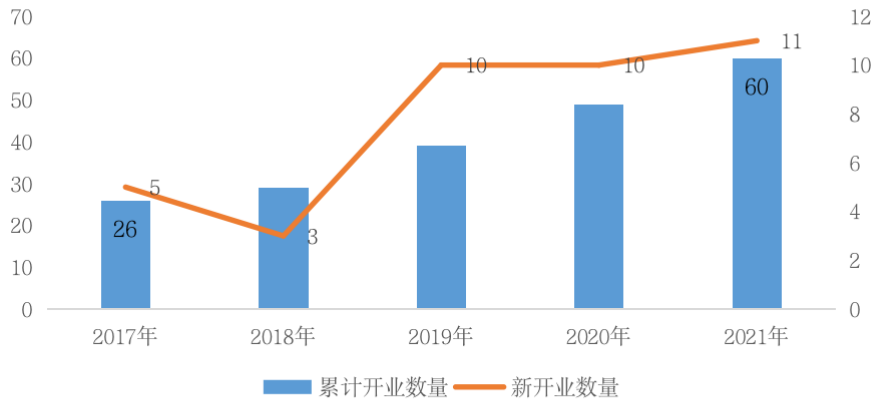 不過,當前部分房企仍以重資產戰略、合作為主,輕資產品牌輸出仍只是作為輔助手段進行運營。比如,龍湖當前已經開業60家天街項目,僅有一家是輕資產管理輸出,新城控股2021年中期開業項目達到105個,僅有4個項目是通過管理輸出實現。