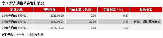 紫光通信, 2021年4月26日,未能如期兌付“18紫光通信PPN001”到期本息。公司共發行過3只定向工具,截至2021年4月末,公司存量債券1只,債券余額20億元。