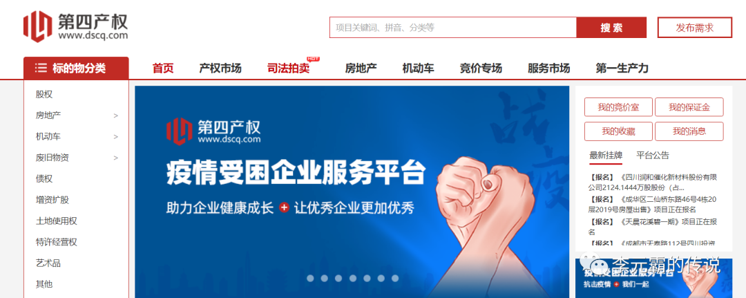 各大產權交易所,包括有所創新的第一生產力,第四產權,聽名字是代表了廣大人民的實際需求,網絡界面也是清爽,體驗算是一波小贊吧。實力也是很強,屬于西南聯合產權的生態。但其并不是司法拍賣網絡服務提供者。為西南的平臺從業者鼓掌系列。