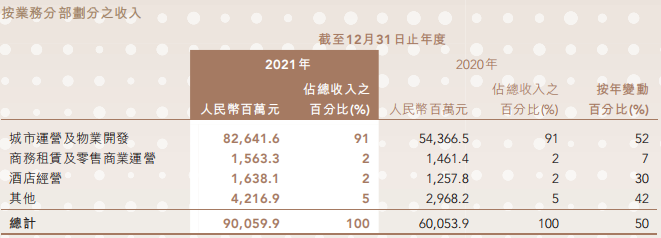實現營業收入900.6億元,同比上升50%;應占利益為46.90億元,同比上升21%;股東應占利潤(扣除投資物業公平值收益后)48.27億,較上年大增49%。