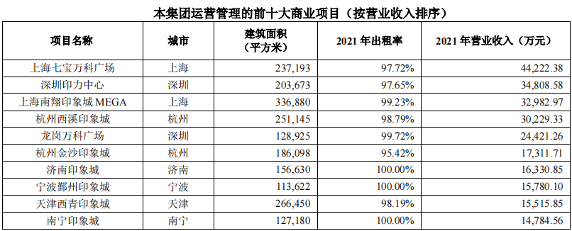 近幾年,印力輕資產管理規模迅速增長。截至2021年底,印力輸出管理項目已達42個(已開業32個),輸出管理面積約237萬平方米。2021年5月,上海漕河涇印象城的開業,成為輕資產合作的代表性項目。
