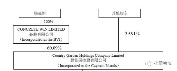 從股權結構看,碧桂園的控股股東為必勝有限公司,持股比例為60.09%,公司實際控制人為楊惠妍。
