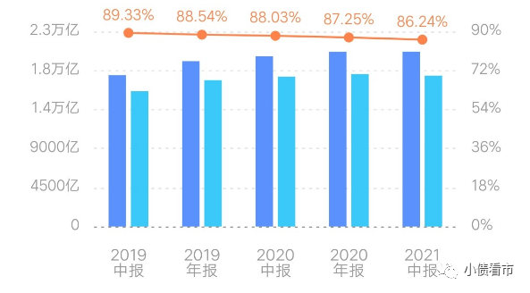 截至2021年6月底,碧桂園總資產為20174.63億元,總負債17397.87億元,凈資產2776.76億元,資產負債率86.24%。