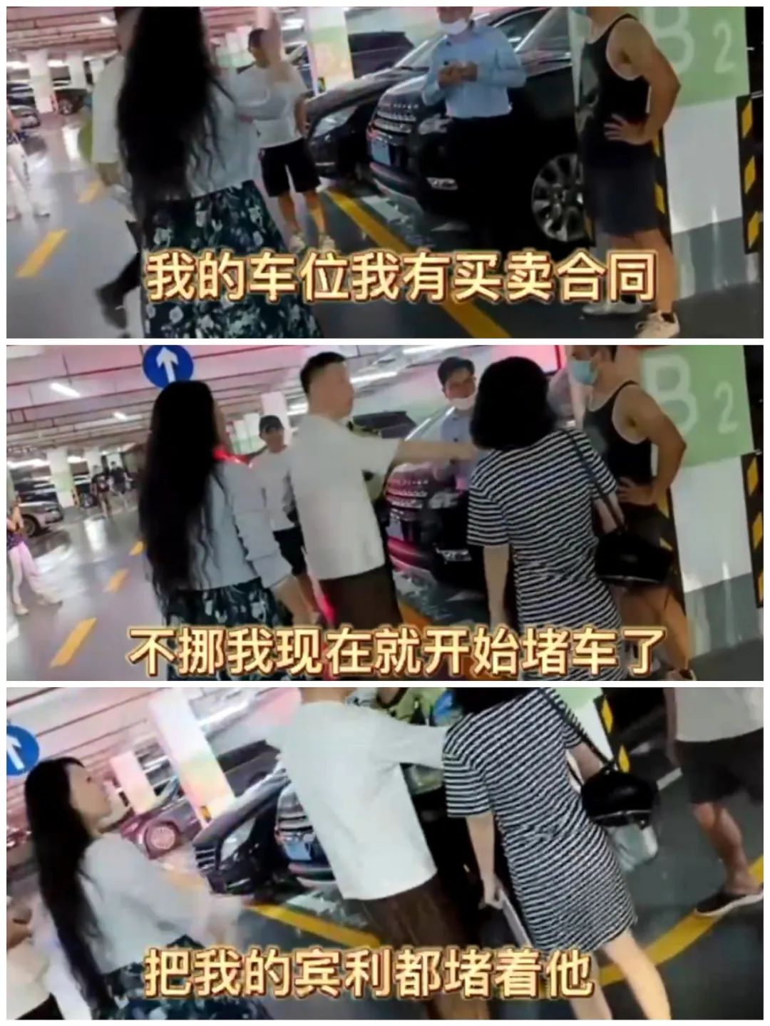 流傳出的現場視頻中的女子稱,“我的車位有買賣合同,這個車位誰敢說是他的?”并揚言要開50臺賓利堵車位一個月。