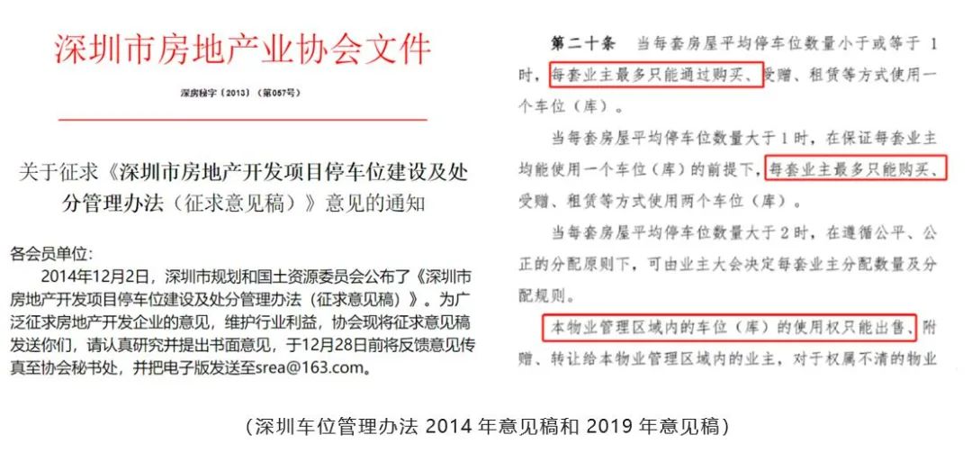 但2014年和2019年的管理辦法都是“意見稿”,沒有正式生效文件,因而引發深圳車位歸屬權和交易的爭議。