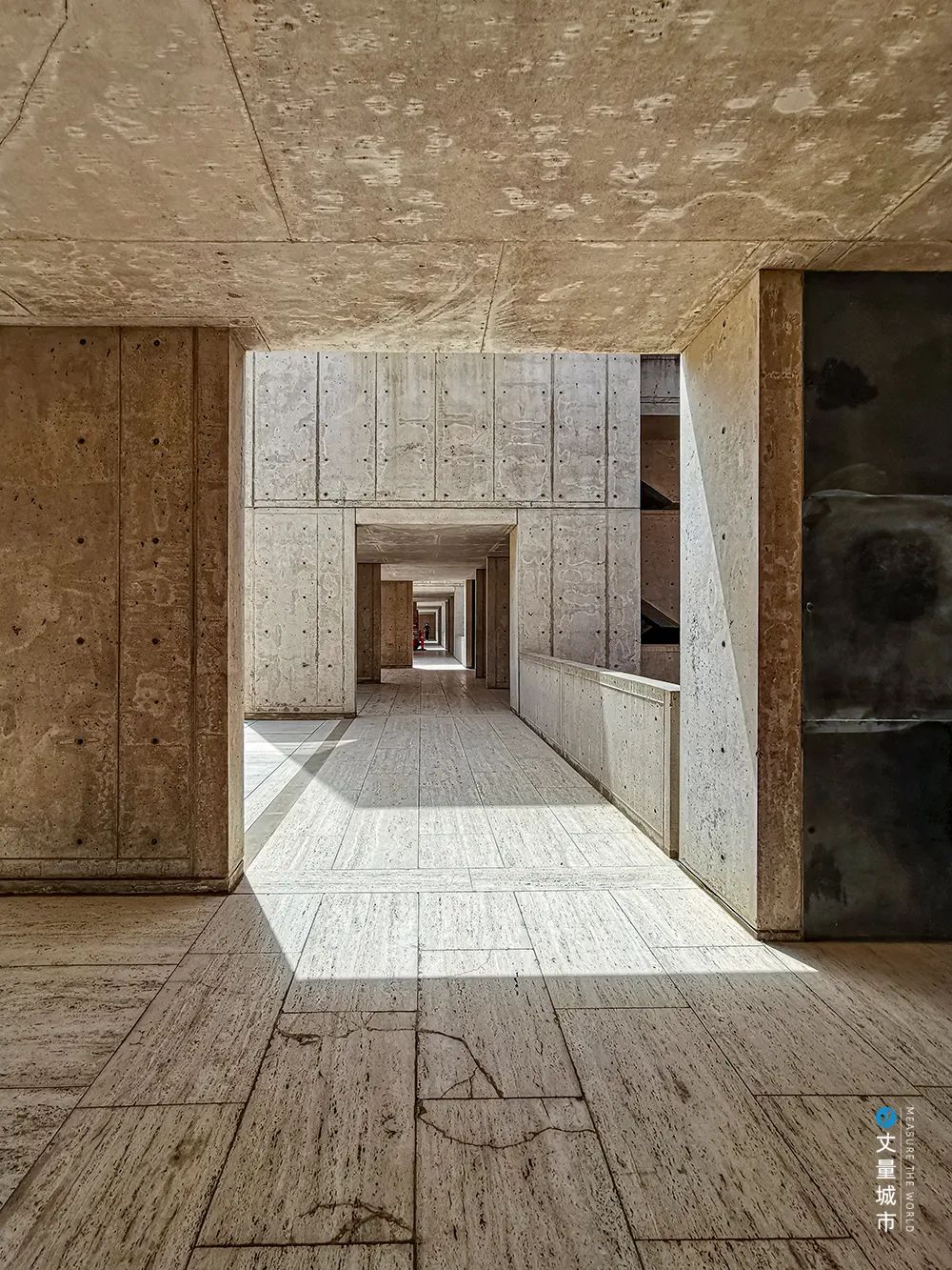 「軸線(xiàn)」「光影」「空間等級(jí)序列」「古典的復(fù)興并與現(xiàn)代建筑主流的融合」等等,對(duì)于薩爾克生物研究所的建筑解讀實(shí)在太多了。