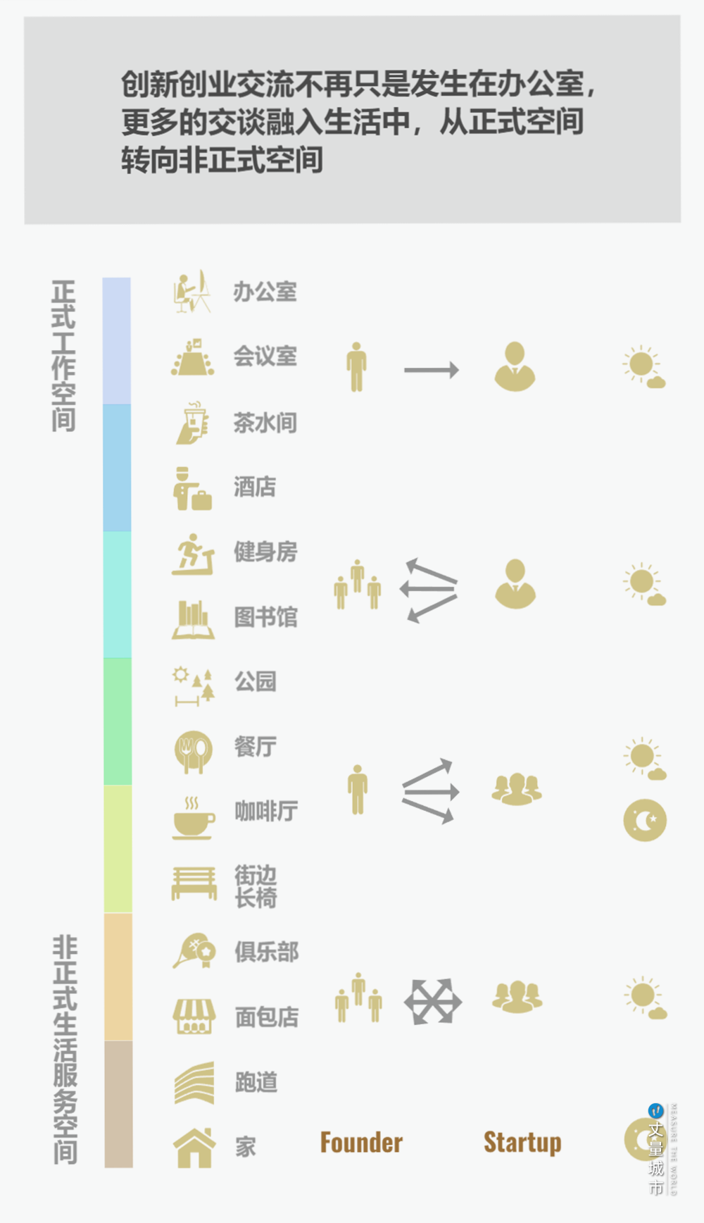 弱關(guān)系普遍發(fā)生在非正式的生活服務(wù)空間。所以集成各種多元生活服務(wù)場(chǎng)景的城市中心,無(wú)疑是搭接各種弱關(guān)系的樞紐。