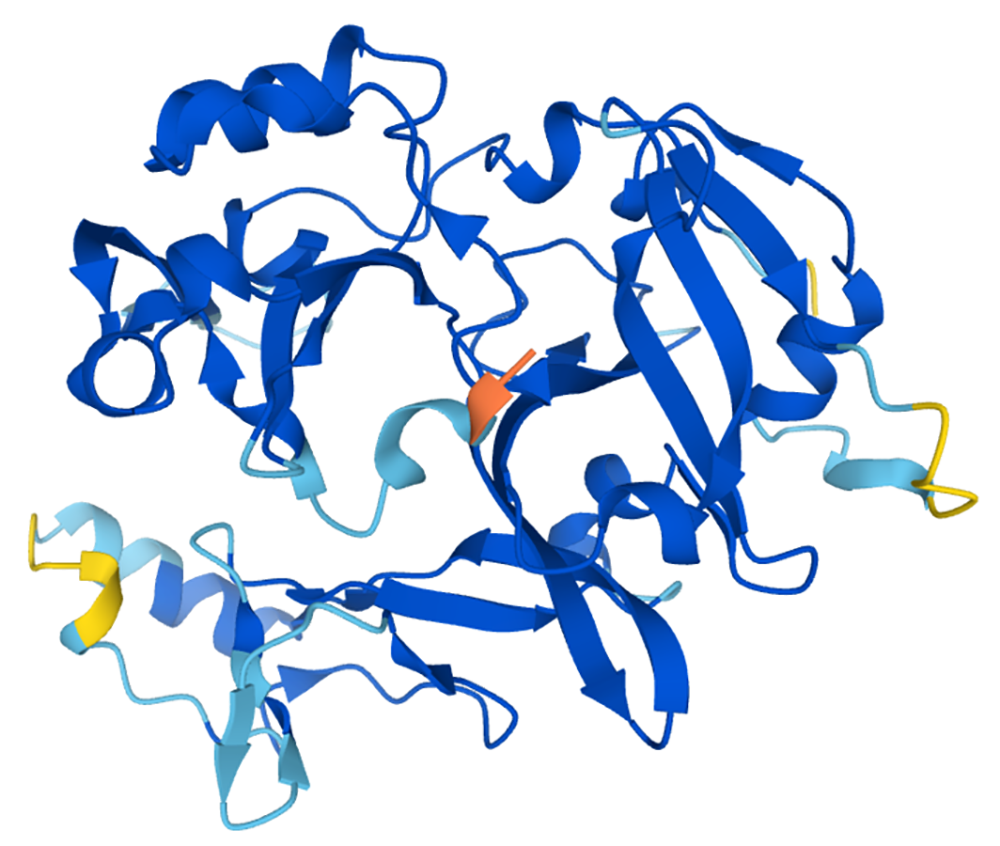▼ AlphaFold預(yù)測(cè)的蛋白質(zhì)3D結(jié)構(gòu)(來(lái)源:Wikipedia)
