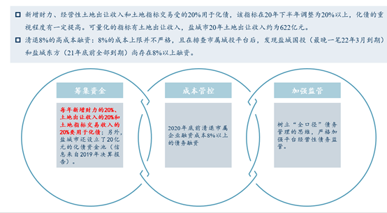 先看一些比較有利的部分。比如說(shuō),他的債券的直融占比比較高,非標(biāo)應(yīng)該被清的差不多了,主要是債券和銀行借款,非標(biāo)暫時(shí)不構(gòu)成核心矛盾。直融的比例大家可能會(huì)比較擔(dān)憂一點(diǎn),但是,他還是有一個(gè)土地的熱度,鹽南開(kāi)投是他轄區(qū)內(nèi)唯一的一個(gè)發(fā)債主體,它總共有三個(gè)平臺(tái),只有這一個(gè)發(fā)債,那這個(gè)平臺(tái),相當(dāng)于是承接了給別人去拆借這樣的一個(gè)角色,出讓的土地返還(50號(hào)文導(dǎo)致直返變暗返變通)大概率也在他這里。另外的話,它的領(lǐng)導(dǎo)其實(shí)相對(duì)是高配的,雖然不完全像亭湖區(qū)這樣的一個(gè)行政屬性,但至少在市里面的統(tǒng)籌上是沒(méi)有問(wèn)題的(配套是和亭湖這些相似,但是行政上暫時(shí)是新區(qū)名義)。