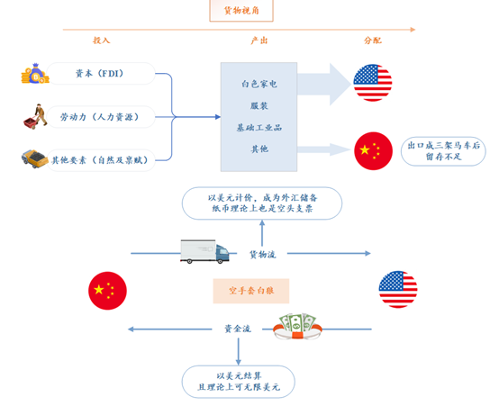 淺層看,中美貿易摩擦是貿易順差引發的世界間資本-貨物的流動失衡;美國作為消費者,我們承擔生產者:而以美元計價的內在矛盾是,美國本質上是獲利更大一方