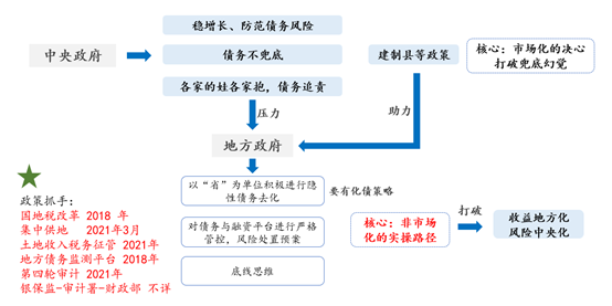這一視角,央地的角力一直存在。所以地方上,為了發展而舉債,成為口號正確非常大的掩蓋;但是綜合我們第一部分的闡述:離開階段性、劑量談問題,是鏡中撈月。那站在現實背景下,我們清晰的浮出以下脈絡: