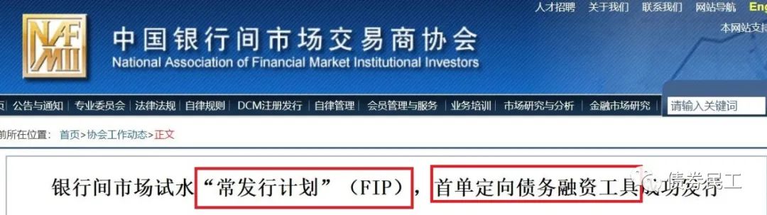 根據(jù)中國(guó)銀行間市場(chǎng)交易商協(xié)會(huì)官網(wǎng)2022年1月18日披露的信息,銀行間市場(chǎng)推出了“常發(fā)行計(jì)劃”(FIP),并已經(jīng)完成了首單債務(wù)融資工具的發(fā)行工作,產(chǎn)品為晉能控股煤業(yè)集團(tuán)有限公司2021年度第七期定向債務(wù)融資工具。