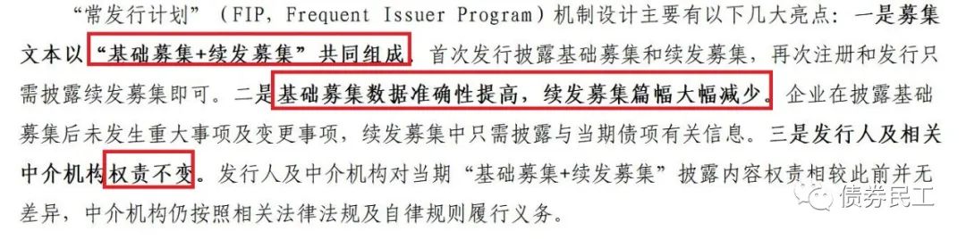 “常發(fā)行計(jì)劃”具備如下三個(gè)明顯的特點(diǎn),能夠在保證發(fā)行人和中介機(jī)構(gòu)權(quán)責(zé)不變的情況下,實(shí)現(xiàn)債務(wù)融資工具的高效、準(zhǔn)確發(fā)行。