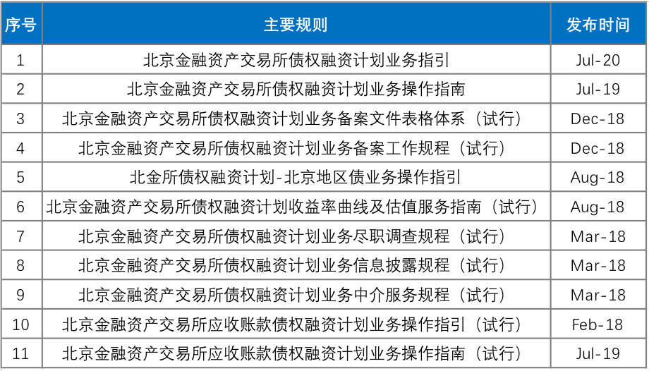 我國與債權(quán)融資計劃相關(guān)的法律法規(guī)其實很有限,主要政策依據(jù)是中國人民銀行辦公廳《關(guān)于北京金融資產(chǎn)交易所成為中國銀行間市場交易商協(xié)會指定交易平臺的意見》(銀辦函【2013】399號)以及交易商協(xié)會《關(guān)于同意<北京金融資產(chǎn)交易所債權(quán)融資計劃業(yè)務(wù)指引>備案的通知》(中市協(xié)發(fā)【2017】70號)。2017年6月,在《北京金融資產(chǎn)交易所債權(quán)融資計劃業(yè)務(wù)指引》(以下簡稱“《業(yè)務(wù)指引》”)首次對外發(fā)布后,債權(quán)融資計劃才具備明確的操作依據(jù)。