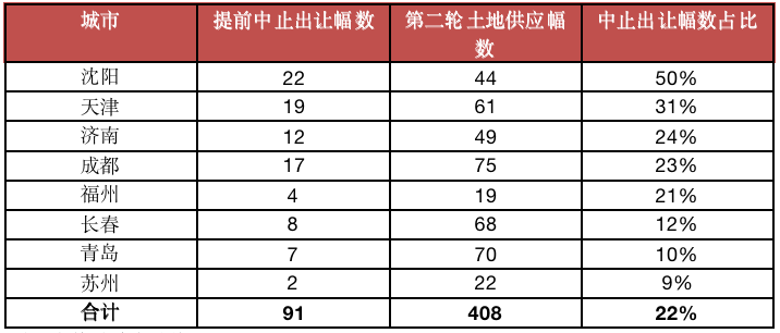 表:重點城市第二輪集中土拍提前中止地塊情況