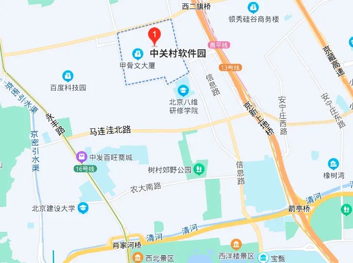 中關村軟件園創建于2000年,總占地面積2.6平方公里,園區一期規劃總占地面積約1.39平方公里,總建筑面積62萬平方米;園區二期規劃總占地面積約1.21平方公里,總建筑規模133萬平方米。