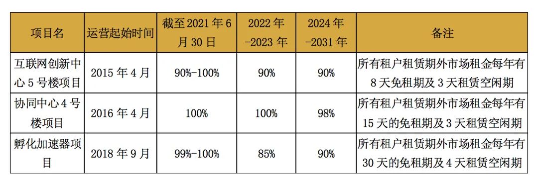 表10 建信中關村REIT標的基礎設施項目出租率預測
