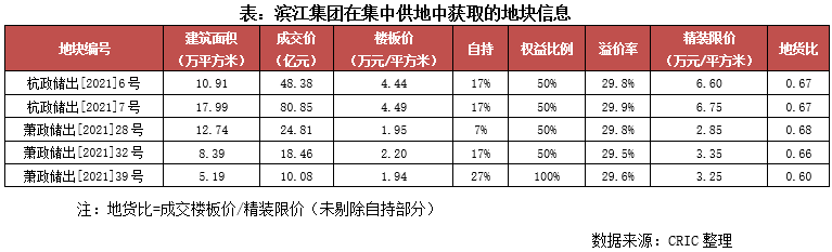 其中濱江集團作為此輪土拍最大的贏家之一,以與融信集團合作拿地為主,共計獲取5塊地,總代價達到182.58億元。但關于盈利預期,董事長戚金興在2020年度網上業績說明會上表示努力做到1%-2%的凈利潤水平。而濱江集團作為杭州深耕房企,在當地具備豐富的開發經驗與成本控制優勢,且具備規模支撐,本身盈利能力并不低,因此從其預估結果也折射出,其他多數地塊的盈利將面臨同樣甚至更嚴峻的困境。