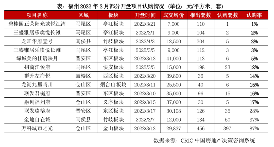 成都3月開盤去化率為58%,看似“名列前茅”,實則供應、成交量仍處底部運行,顯著低于2021年上半年月均值。目前成都限制性政策從嚴,首套房貸利率高達5.6%,購房者當前承擔的購房壓力仍較大,且目前政策暫無松動跡象,也導致了購房者對后市信心不足。目前來看,客戶價格敏感度高,剛需屬性顯著,3月恒大天府半島項目和融創春風十里項目均出現了到訪量激增,主要就是源于項目售價低于周邊競品項目6000-8000元/平。
