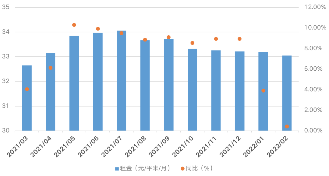 當(dāng)前市場租金價格仍處于高位,2月單月租金仍接近去年全年平均值,有14個城市租金水平高于平均租金。