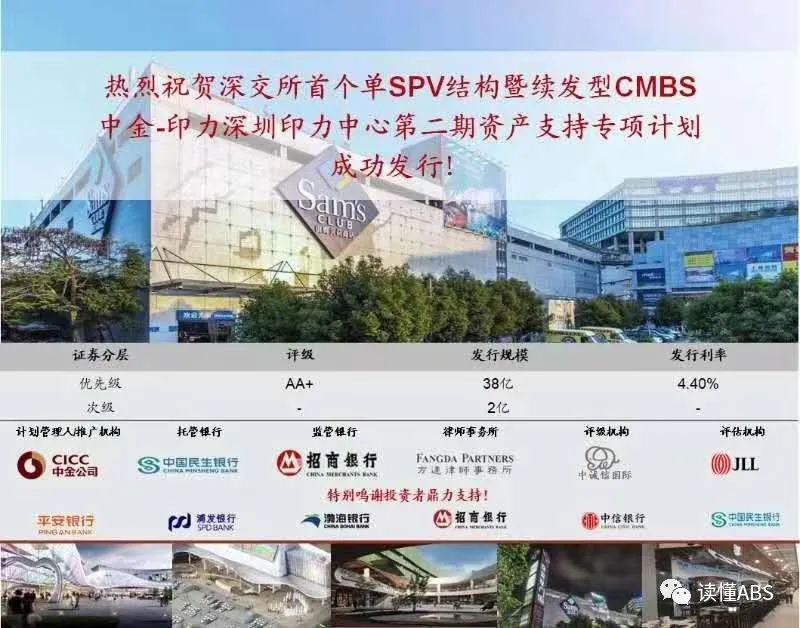 近日,又雙叒見二單單SPV結構CMBS產品成功發行,分別是“中金-錢投-杭州國際會議中心資產支持專項計劃”和“中金-印力深圳印力第二期資產支持專項計劃”,均是由中金公司擔任計劃管理人。加上此前4月發行的“中信信托-南京世茂希爾頓酒店資產支持專項計劃”和5月發行的“華泰佳越-仁恒三亞皇冠假日酒店資產支持專項計劃”,目前單SPV結構CMBS產品已有4單。