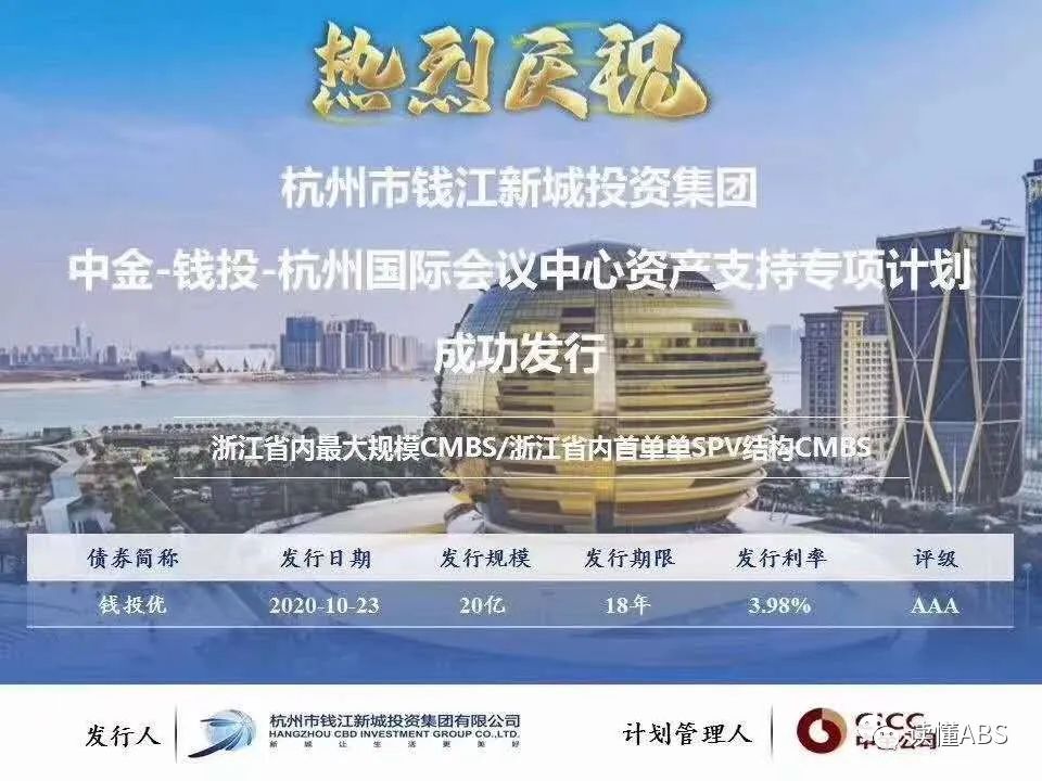 杭州國際會議中心CMBS發行人杭州市錢江新城投資集團有限公司,是杭州市屬大型國有企業和錢江新城、城東新城、亞運村建設開發主體單位。企業最新評級AAA,截止2019年末,企業總資產511.29億元。負債率65.58%。